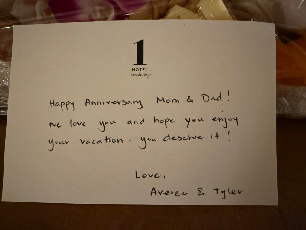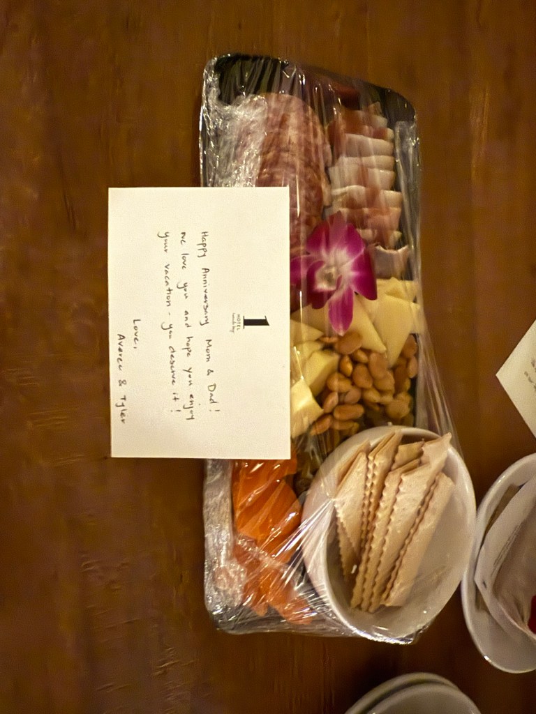 We got to our room and were greeted with a surprise from our kids! Such a treat because we were hungry and tired!